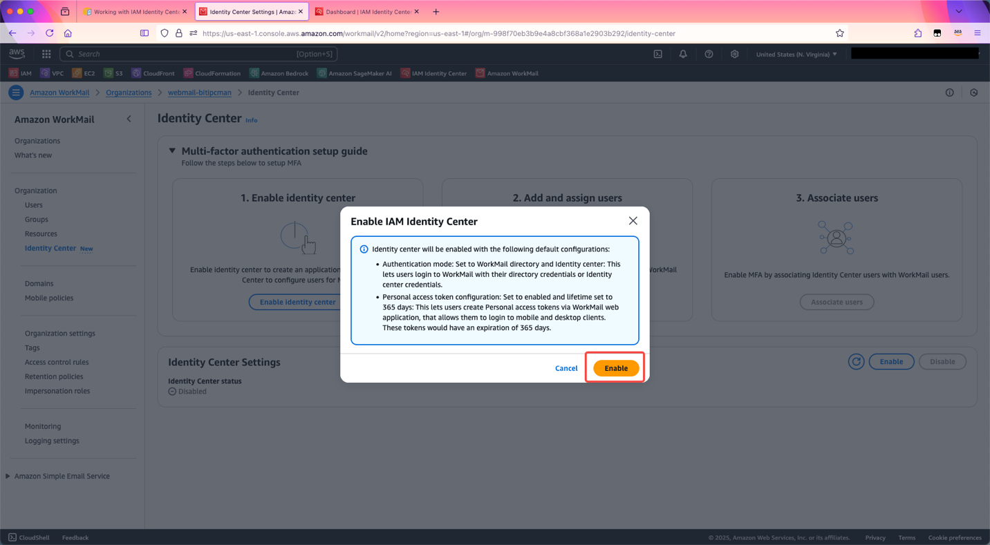 本文介绍如何为 Amazon Workmail 启用 IAM Identity Center 并开启 MFA 多因素认证。