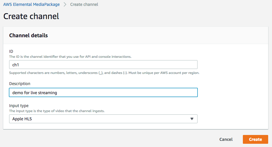 本次实验以HLS为例,使用存储在S3上的一个预先转码完成的文件做为输入源,对于MediaLive来说,这个输入源就是一个直播源。