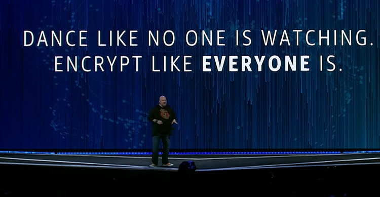 在 2017 年的 AWS re:Invent 大会上,Werner 鼓励听众“尽情舞蹈,就像没人观看一样;轻松加密,就像每个人都会做的那样”: