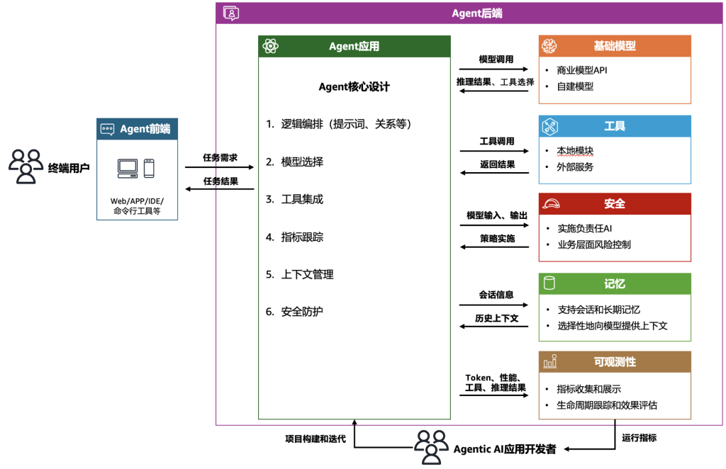 而构建 Agentic AI 应用需要将基础模型的思考与规划能力、工具调用能力以及符合业务需求的提示工程和逻辑编排能力有机整合,从而引导应用高效完成预定任务目标。这种整合过程通常要求基于多种模型和工具接口实现完整的系统架构,同时还需融合安全防护机制、可观测性框架以及底层资源的灵活调度等生产级能力,以满足实际应用部署需求。此类系统的实现涉及多层次技术挑战,需要综合考量各组件间的协同效应。