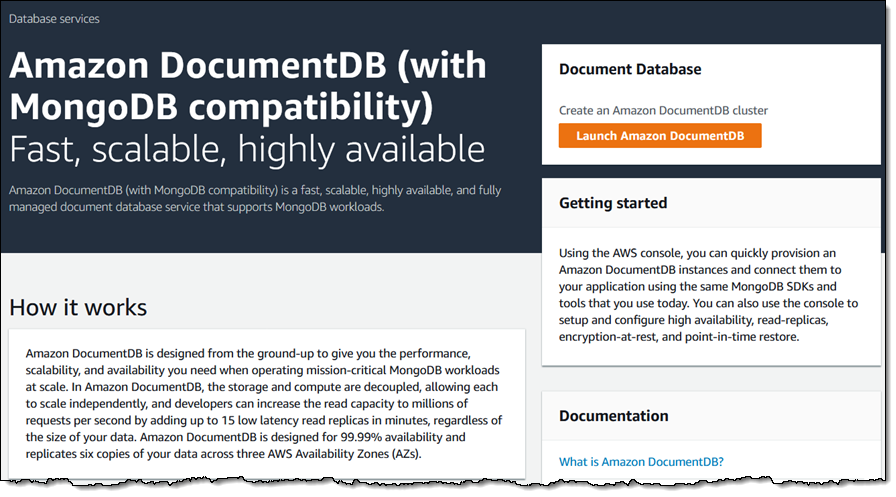 新增功能 – Amazon DocumentDB(兼容 MongoDB):快速、可扩展、高度可用
