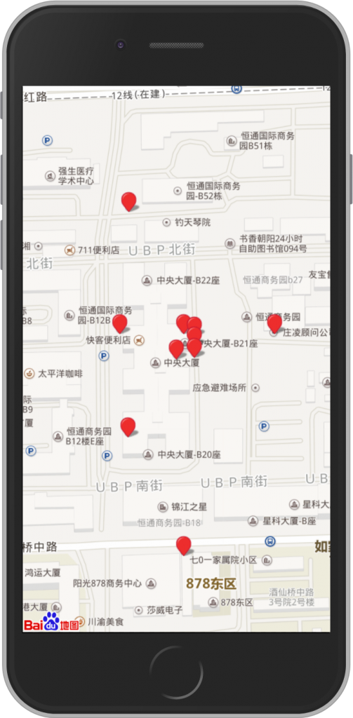 基于以上代码,服务端就可以返回最近的10个资源以及每个资源离当前位置的距离。例如: