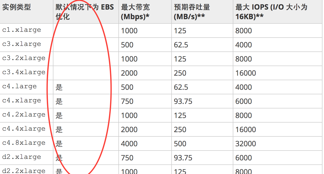 EC2机型EBS优化的更多信息,可以在这里找到http://docs.aws.amazon.com/zh_cn/AWSEC2/latest/UserGuide/ebs-ec2-config.html