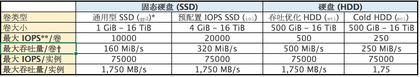 另外需要注意的是,对于使用最多的GP2类型SSD,存在着读写突增特性(链接),无论多小的磁盘短时间内IOPS都可以到达3000,具体就不再展开说了。 参考这里http://docs.aws.amazon.com/zh_cn/AWSEC2/latest/UserGuide/EBSVolumeTypes.html