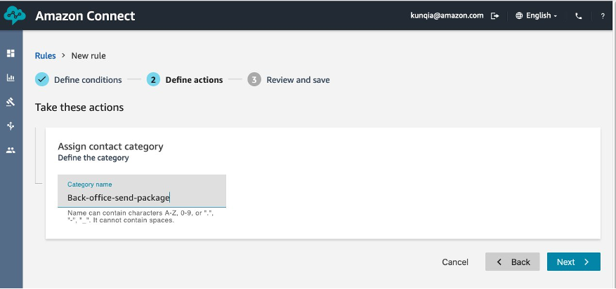 In this blog, we will use AnyCompany, a fictitious insurance provider as the example. In this example, a customer calls to report their intent to rent part of an existing insured property, and asks for more information about the renters insurance service. After the agent handles the customer inquiry, typically, as part of their post call work, they need to research the type of information brochure to send and place a request to the appropriate team. Instead, we will create a Contact Lens rule to be automatically triggered and set up all the actions to create a task and associate it with the appropriate contact flow. The contact flow will then leverage all the information available to route the task to the right work queue.