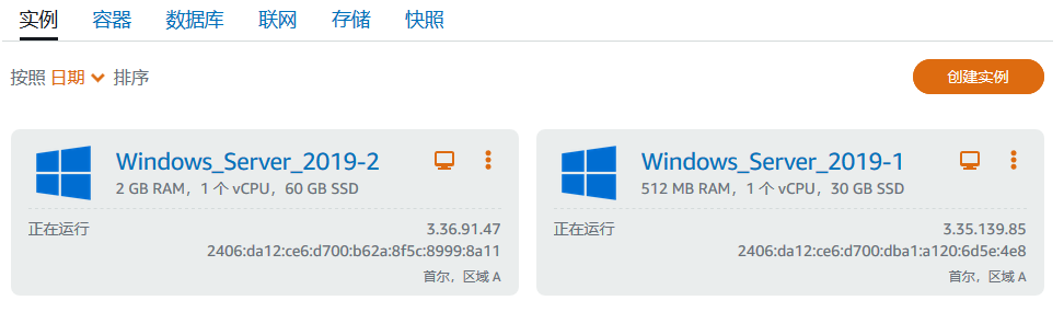 b. 在 Lightsail 主页的 实例标签下,点击 创建实例