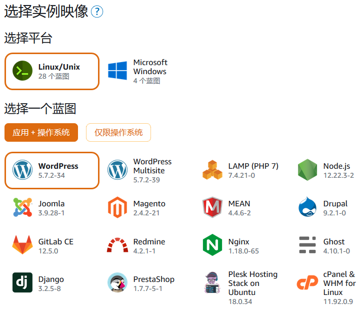 备注:访问 Lightsail 文档《建立Amazon Lightsail 实例》,可以获取更多关于如何在 Lightsail 实例的信息。
