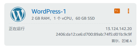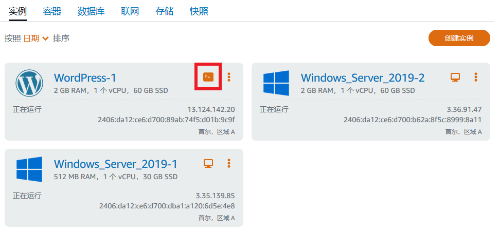 a. 在 Lightsail 主页的 实例标签上,点击正在运行的 WordPress 实例