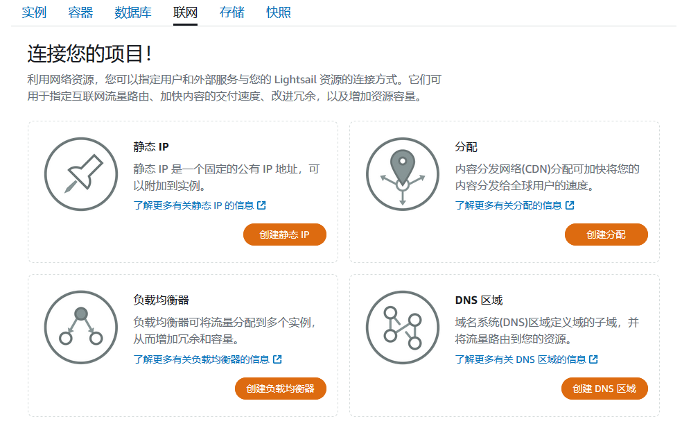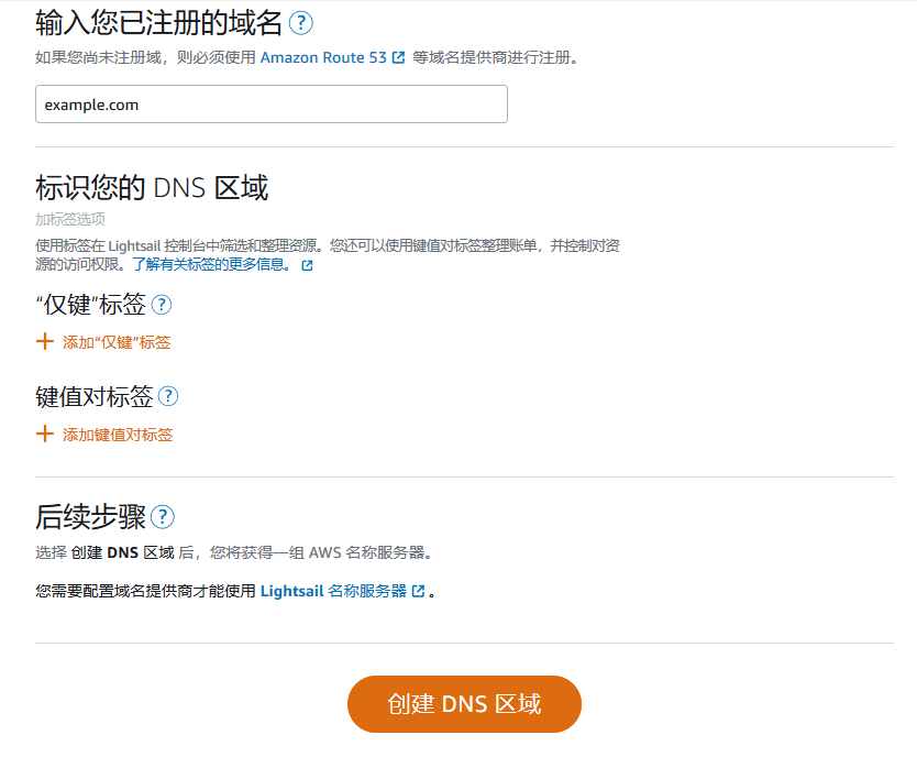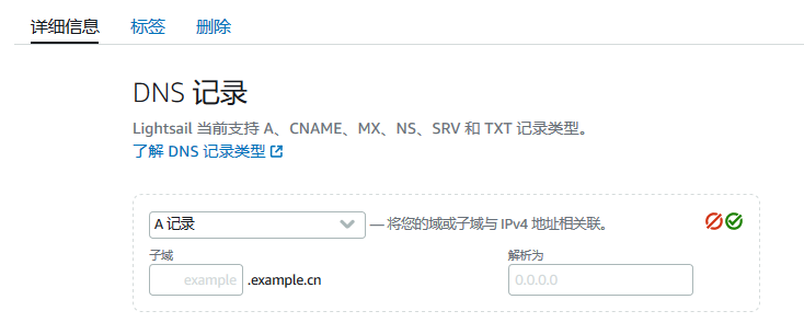 备注:如需了解更多信息,详见《在 Amazon Lightsail 中创建 DNS 区域以管理域的 DNS 记录》