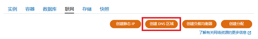 a. 在 Lightsail 主页的网络标签,点击创建 DNS 区域