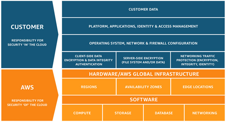 Under the AWS Shared Responsibility Model, AWS customers retain control of what security they choose to implement to protect their own content, platform, applications, systems and networks, no differently than they would for applications in an on-site data center. Customers can build on the technical and organizational security measures and controls offered by AWS to manage their own compliance requirements. Customers can use familiar measures to protect their data, such as encryption and multi-factor authentication, in addition to AWS security features like AWS Identity and Access Management.