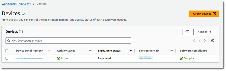 In meiner Funktion als Administrator kann ich über die Thin Client-Konsole verschiedene Aspekte verwalten, darunter Umgebungen, Geräte und Software-Updates. So habe ich beispielsweise die Möglichkeit, die Liste der von mir verwalteten Geräte einzusehen und zu überprüfen: