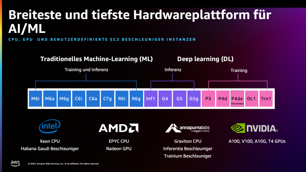 Die folgende Abbildung zeigt die besonders für AI/ML Anwendungen geeigneten und verfügbaren AWS Instance-Typen: