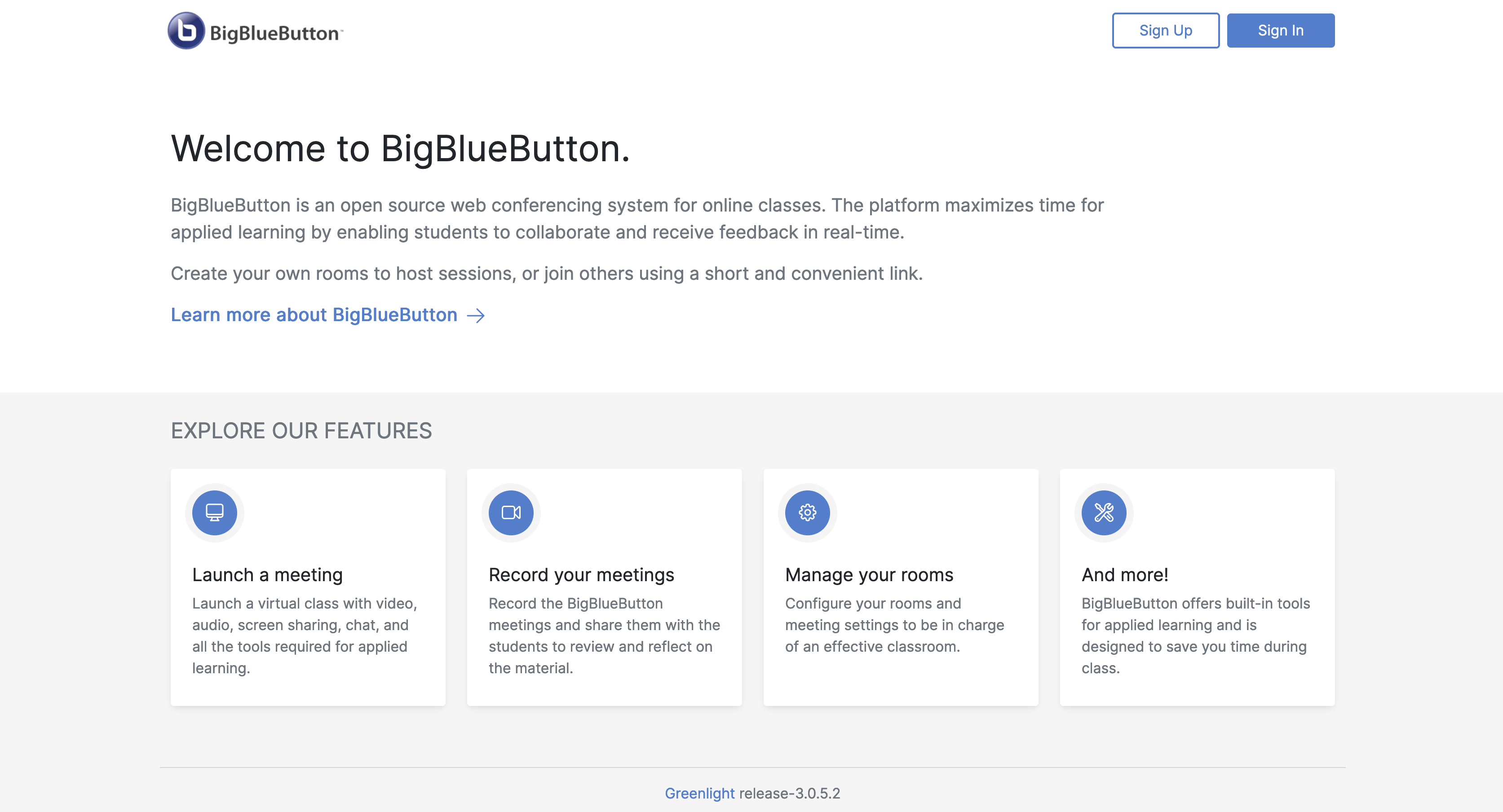 Bild 2: Startseite von Greenlight / Big Blue Button