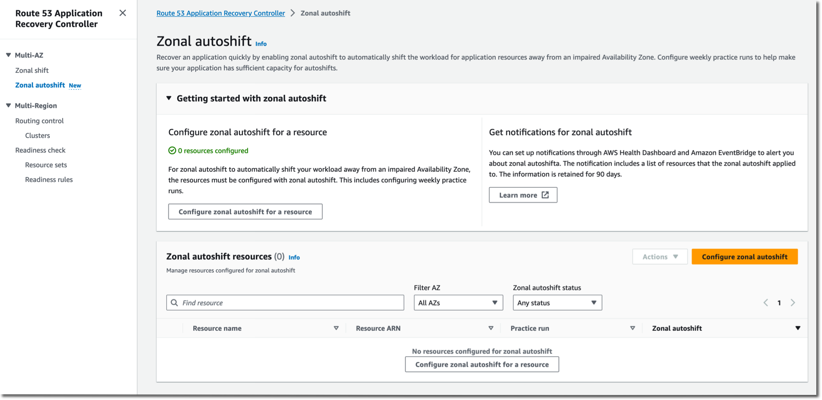 Zweitens müssen Sie die zonale Automatik-Umschaltung bewusst für die von Ihnen gewählten Ressourcen aktivieren. AWS wird diese Umschaltung nur auf die Ressourcen anwenden, die Sie ausgewählt haben. Die Nutzung der zonalen Automatik-Umschaltung hat Auswirkungen auf die Gesamtkapazität, die Ihrer Anwendung zur Verfügung steht. Wie ich bereits erläutert habe, muss Ihre Anwendung darauf vorbereitet sein, indem Sie genügend Kapazitäten in den verbleibenden Verfügbarkeitszonen bereithalten.