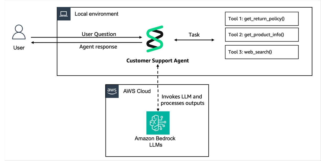 Every production system starts with a proof of concept, and our customer support agent is no exception. In this first phase, we build a functional prototype that demonstrates the core capabilities needed for customer support. In this case, we use Strands Agents, an open source agent framework, to build the proof of concept and Anthropic’s Claude 3.7 Sonnet on Amazon Bedrock as the large language model (LLM) powering our agent. For your application, you can use another agent framework and model of your choice.