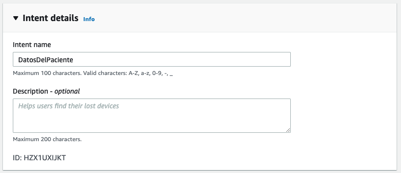 - For Intent name, change to DatosDelPaciente.