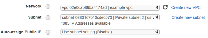 Figura 10: Configuración del asistente de inicio de EC2 con información de combinación de VPC, subred y dominio completada.