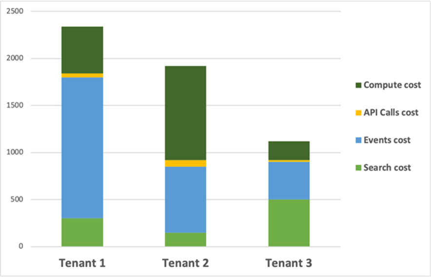 Tenga en cuenta que una vez que el proveedor de SaaS tiene acceso a insights de costo por tenant, se pueden usar para hacer preguntas más amplias sobre cómo ese costo se relaciona con otras tendencias de actividad, como los datos de uso de funciones y visibilidad en la forma de uso.