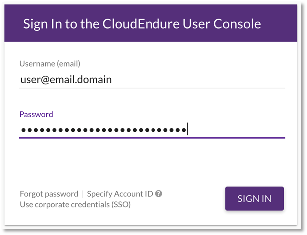 Figura 2: Inicio de sesión en la consola de usuario de CloudEndure
