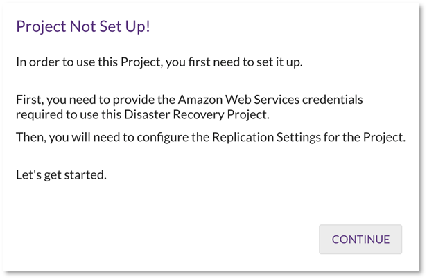 La siguiente ventana emergente le guiará a través de la configuración del proyecto. Haga clic en «Continue»: