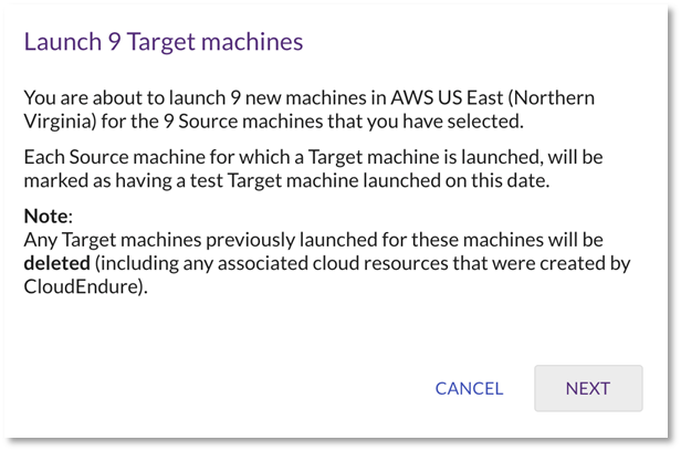 Confirme el lanzamiento de las máquinas de destino y haga clic en «NEXT»: