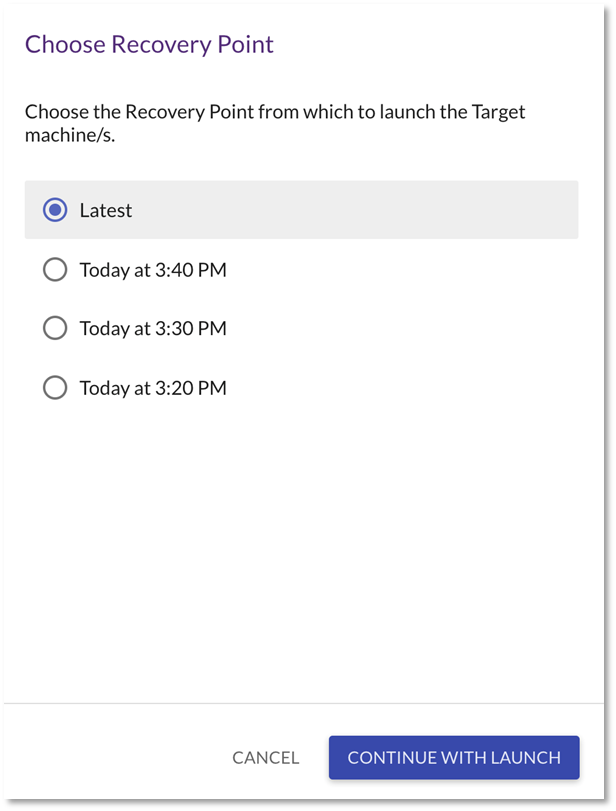 Elija el punto de recuperación que desea probar y haga clic en «CONTINUE WITH LAUNCH»: