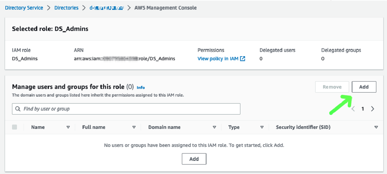 3. En la sección Manage users and groups for this role, haga clic en Add: