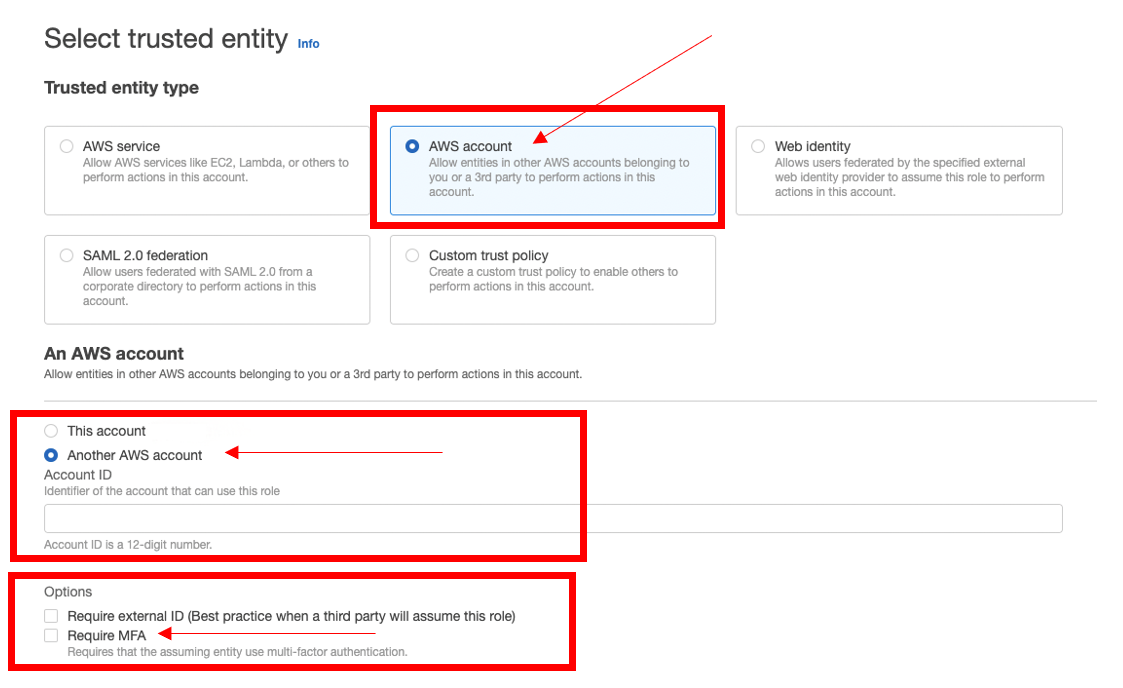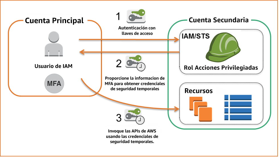 Muchos de ustedes poseen y administran varias cuentas de AWS, por lo que con frecuencia se preguntan cómo simplificar la administración del acceso entre esas cuentas. Los roles de IAM proporcionan un mecanismo seguro y controlable para permitir el acceso entre cuentas. Los roles permiten el acceso entre cuentas sin compartir credenciales y sin necesidad de crear usuarios de IAM duplicados. Es posible, añadir otro nivel de protección para el acceso entre cuentas, exigiendo que los usuarios se autentiquen mediante un dispositivo MFA antes de asumir un rol .
