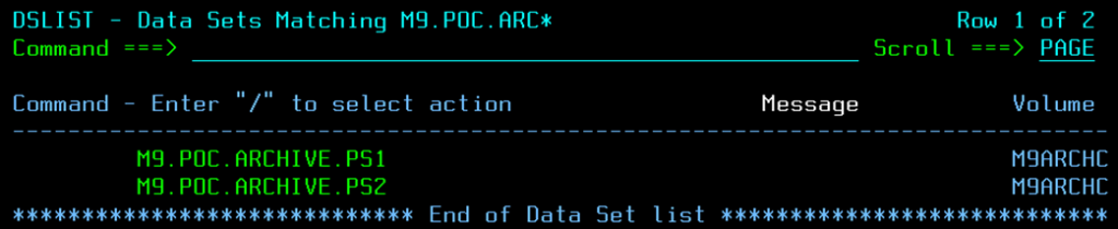 Figura 2 – z/OS conjunto de datos archivado para AWS por Model9 con volumen M9ARCHC.