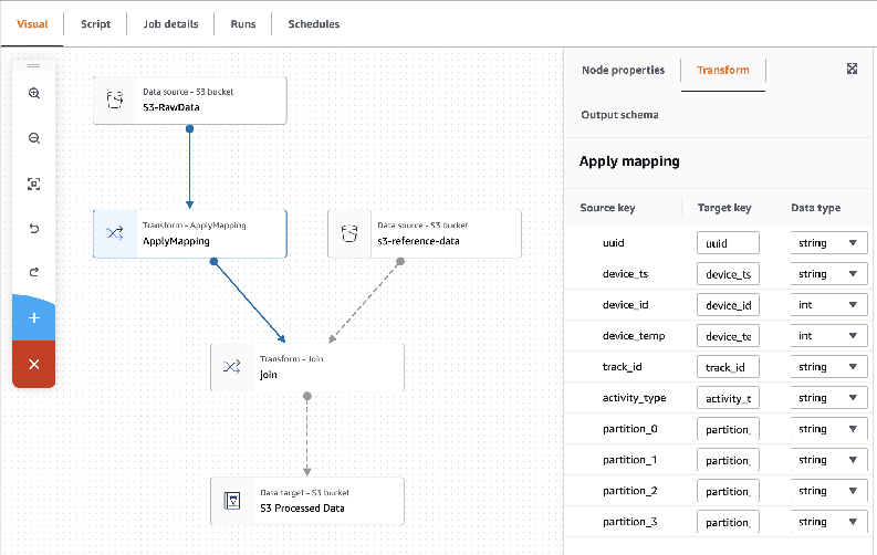 Figura 1: Ejemplo de visualización de un trabajo de ETL en AWS Glue Studio.