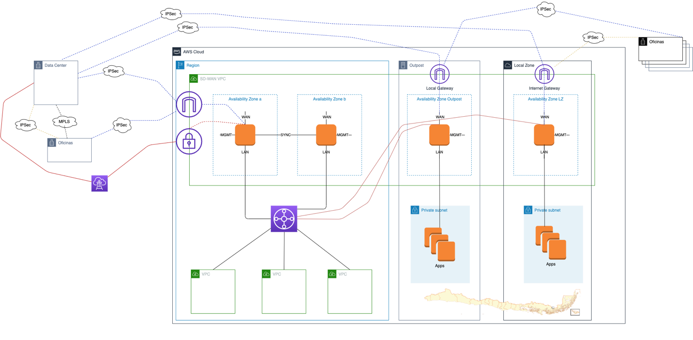 Pensando en aplicaciones sensibles a la latencia, o en datos que por regulación debamos llevar a infraestructura que este local en alguna de las ubicaciones en las cuales tenemos opciones de AWS Local Zones o AWS Outposts a nivel local, y en este sentido la misma lógica del SD-WAN se puede aplicar en estos casos.
