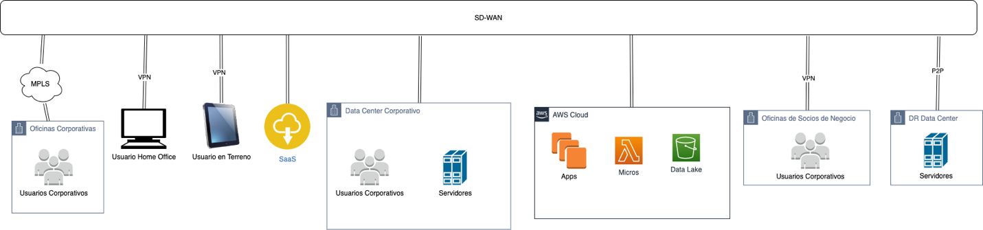 Con esto podremos direccionar el tráfico desde un cliente de una persona que trabaja desde su casa, una oficina, un SaaS, una aplicación en nube u On Premises.
