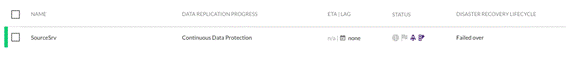 - CloudEndure creará la máquina final de failover utilizando las configuraciones que proporcionó en el Blueprint en el paso 5. En este punto, la columna Disaster Recovery Lifecycle mostrará «Failed Over».