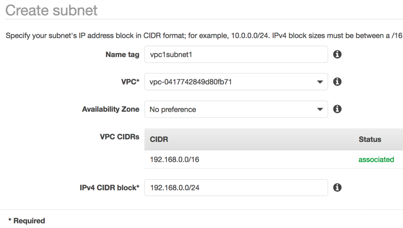 - Especifique una nueva subnet con un CIDR diferente, en este caso 10.0.254.0/24.