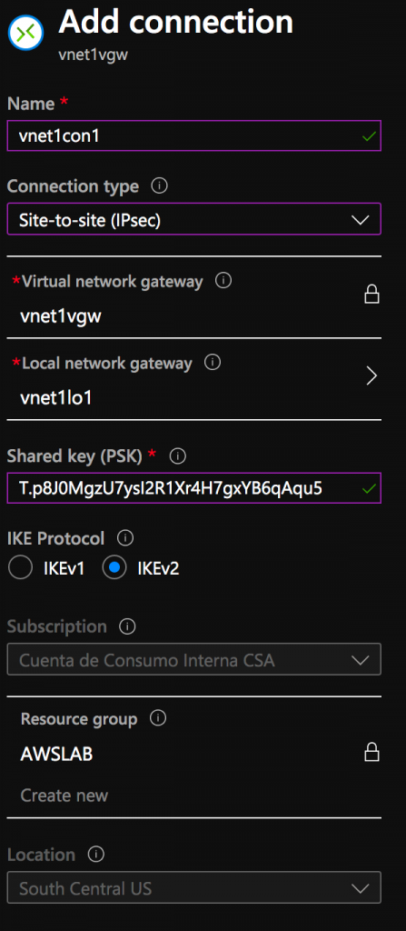- Agregar Conexión desde el Virtual Network Gateway (Repetir paso No. 13).