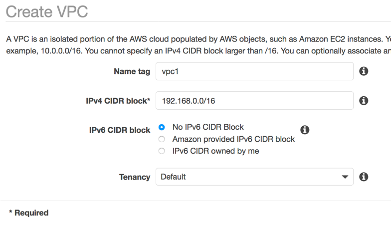 - En Address Space ingrese el segmento de red del VPC de AWS.