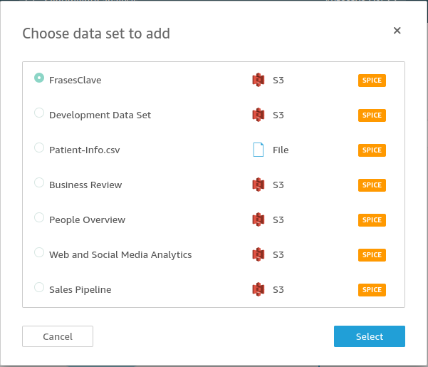 Seleccionamos el conjunto de datos de FrasesClave y hacemos clic en Select: