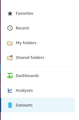 Una vez completada la importación de las tres fuentes de datos crearemos un nuevo análisis. En la pantalla home de QuickSight seleccionamos Analyses y después haremos clic en New analysis.
