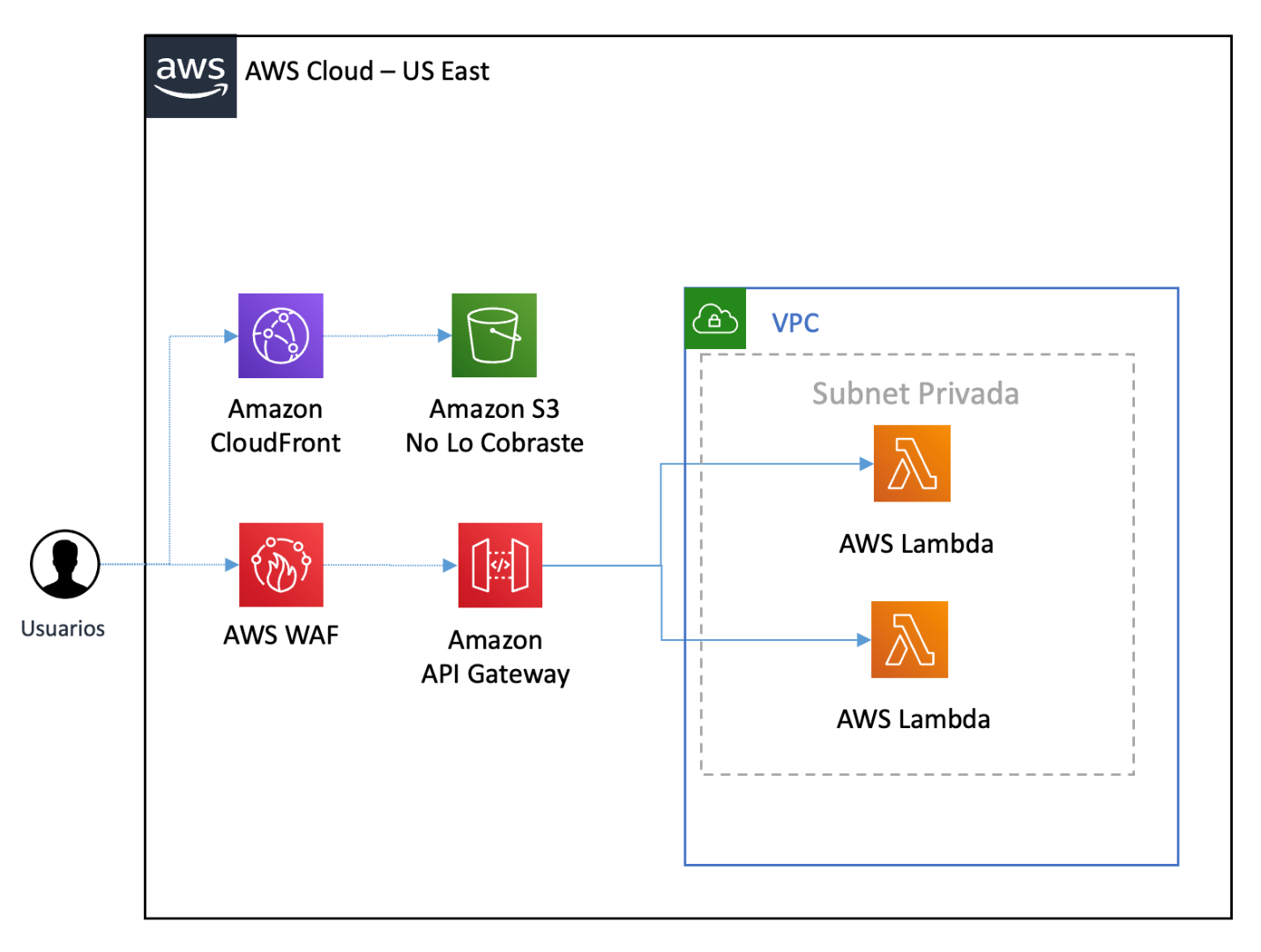 - AWS Lambda: es un servicio informático que permite ejecutar código sin aprovisionar ni administrar servidores, se crearon una serie de funciones actuando de backend.