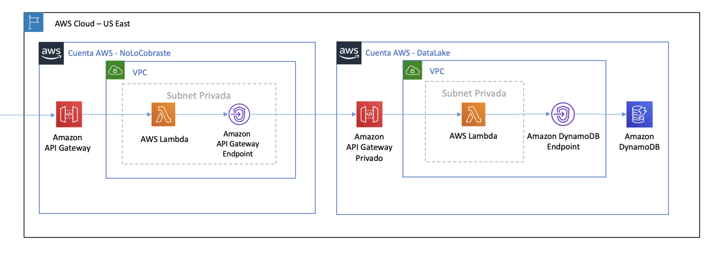 Una vez construida la aplicación web y ya contando con la fuente de los datos en el Datalake, se tenían que integrar ambas soluciones que se desplegaron en distintas cuentas de AWS.