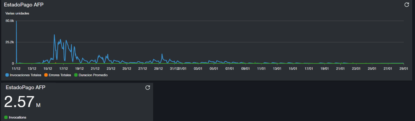 El monitoreo es una componente fundamental en cualquier solución, se construyeron diversos paneles de monitoreo de Amazon Cloudwatch, en conjunto con una serie de reglas, alertas, notificaciones y alarmas que permiten mantener la plataforma funcional y operativa 24/7.