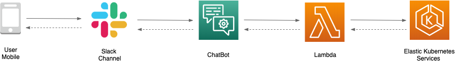 Yla idea es utilizar el servicio AWS ChatBot para interpretar los mensajes que se originan en el canal de Slack, enviarlos a AWS y convertirlos en comandos para que AWS pueda interpretarlos y actuar de acuerdo. Utilizaremos el servicio Elastic Kubernetes Services (EKS) como ejemplo, pero es posible aplicar la idea a otros servicios.