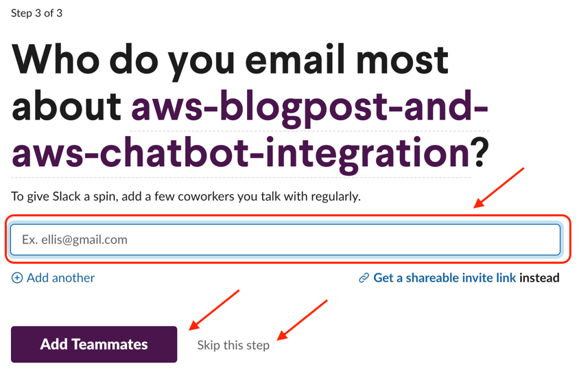 Paso 3: Agregue las personas (correo electrónico) que formarán parte de su espacio de trabajo. O haga clic en «omitir este paso» si no desea agregarlo.