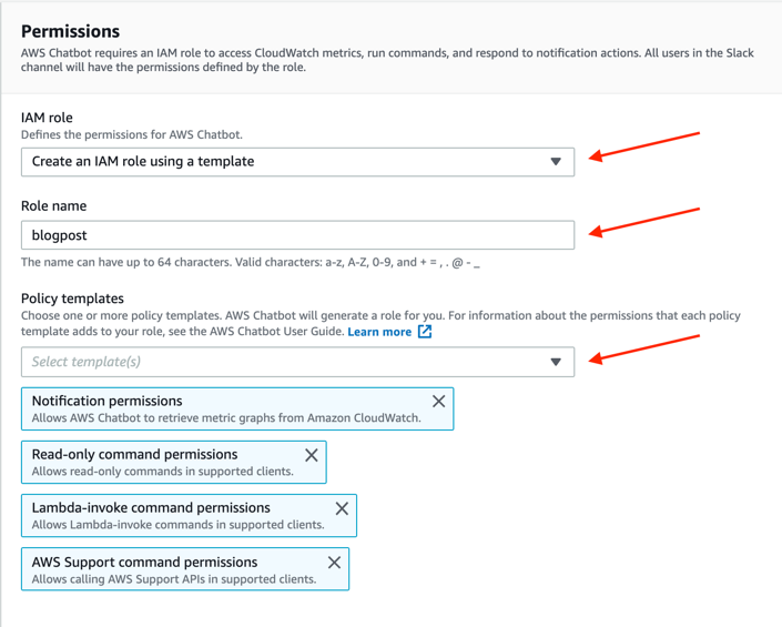 AWS ChatBot es un agente interactivo que facilita la supervisión y la interacción con sus recursos de AWS a través de sus canales de Slack y las salas de chat de Amazon Chime. Con AWS Chatbot, puede recibir alertas, enviar comandos para ejecutarlos por AWS y devolver información de diagnóstico, invocar funciones de AWS Lambda y crear casos de soporte de AWS. Sólo un recordatorio: AWS ChatBot no es el mismo servicio que Amazon Lex. Se trata de diferentes servicios con diferentes funcionalidades. Haga clic en el enlace para obtener más información sobre Amazon Lex.
