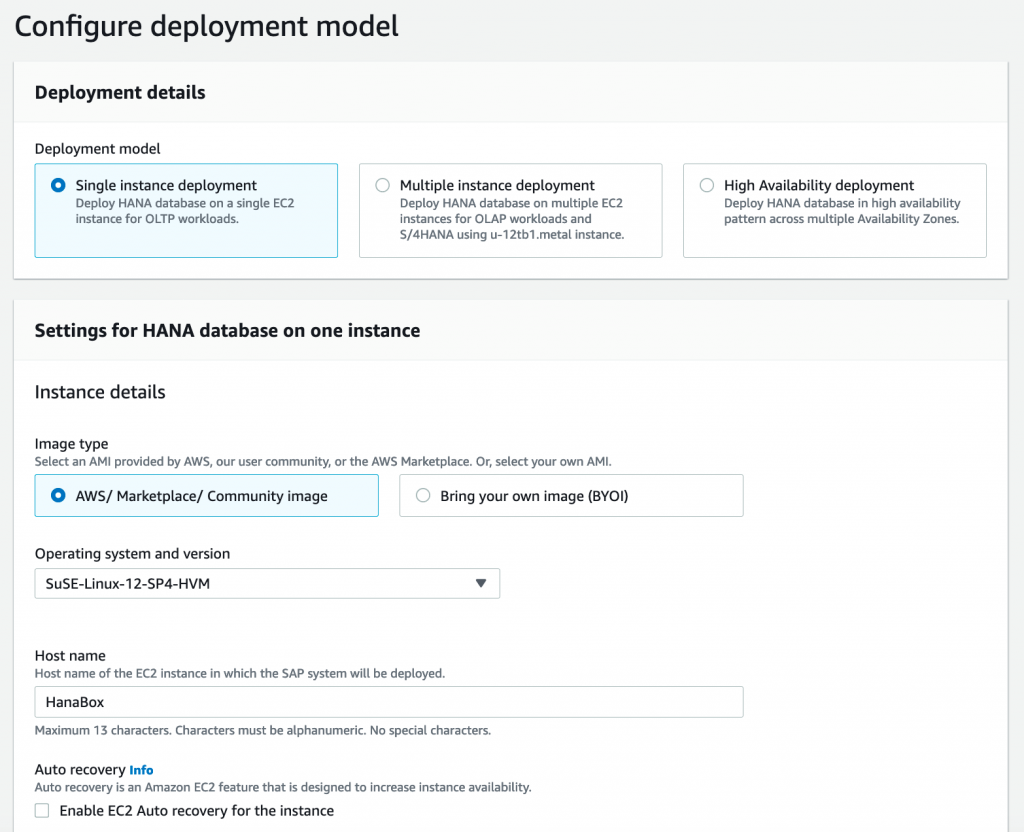 Aunque es posible que exista un diseño previo que especifique las instancias a utilizar, es mucho mas común que esta selección ocurra a partir de los datos de salida de un SAP Quicksizer (SAPs, memoria, etc) que deben ser cruzados con el SAP HANA Hardware Directory para obtener las instancias certificadas adecuadas.