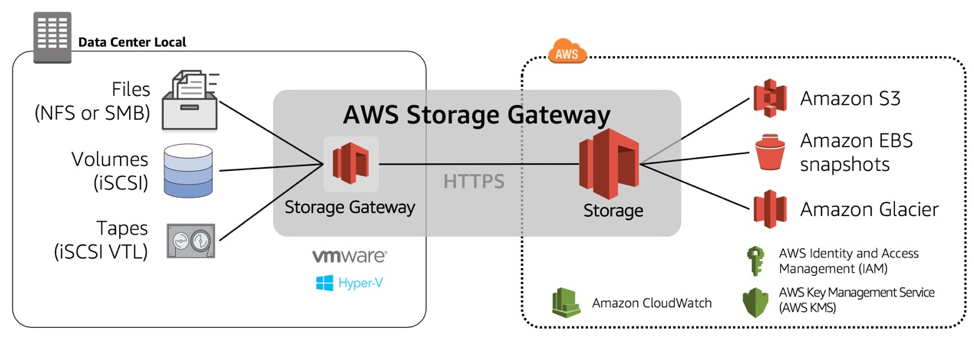 El funcionamiento es simple, un servidor virtual o físico que se despliega en la infraestructura local del cliente. El Storage Gateway permite exponer volúmenes de almacenamiento para que estos sean utilizados por las aplicaciones y/o servidores locales para leer y escribir.
