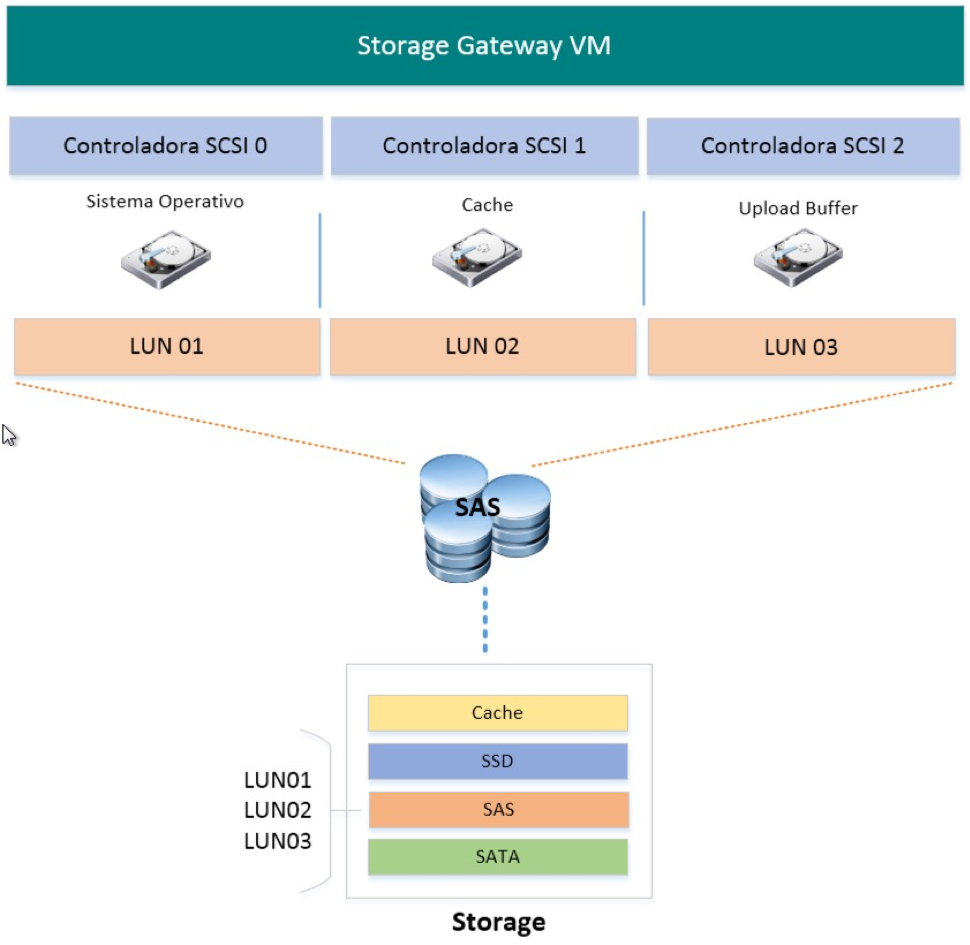·      Cada disco del Storage Gateway debería estar respaldado por una LUN diferente.