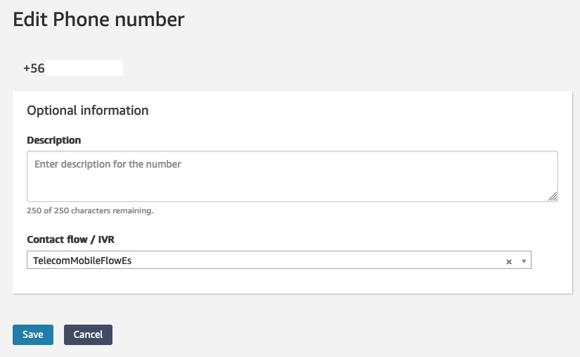 - A continuación, asocie un número de teléfono con el flujo de contacto de servicios móviles.