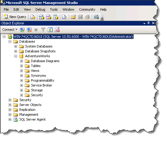 Después de iniciar SQL Server Management Studio, conéctese a la instancia predeterminada (o instancia con